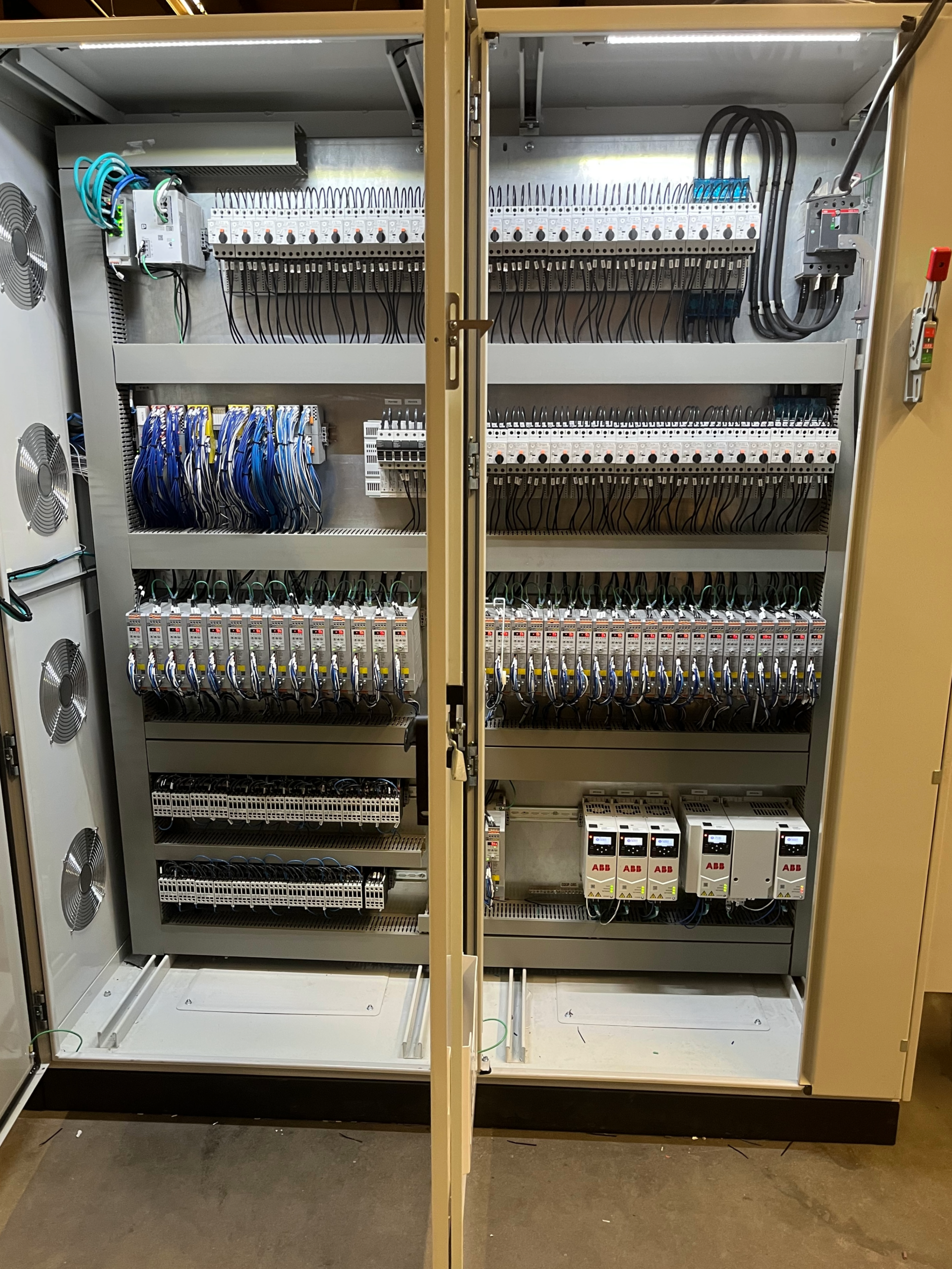 Driven and managed by industry-leading technology, our Motor Control Centers are custom built for each application to power your entire operation’s production needs. MCCs are a safe, organized, and efficient way to control multiple motors or operations from one location by utilizing a PLC (Programmable Logic Controller) to continuously communicate with your Process Control Systems (PCS).